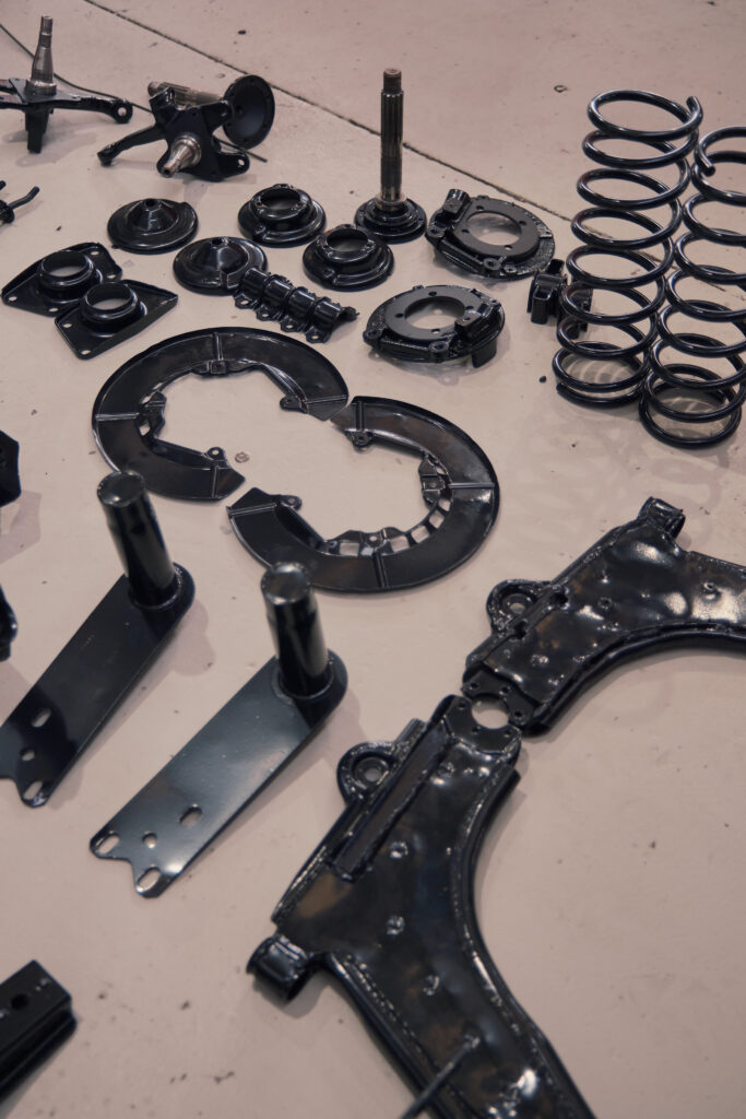 The brief is to restore the running gear to perfection while keeping the body and details intact to continue to tell the car’s story. So far we have removed the drivetrain and suspension. We have powder coasted the suspension which is actually 924 turbo spec and begun a full engine rebuild.